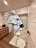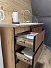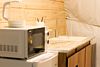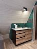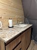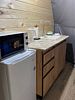 Кухонная зона со всем необходимым: холодильник, СВЧ-печь, эл. чайник, полный комплект посуды на шесть персон. Комфортный санузел: душевая кабина с гидромассажем и радио, унитаз, раковина, зеркало с подсветкой, тапочки, полотенца, умывальные принадлежности.