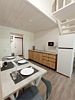Кухонная зона со всем необходимым: холодильник, СВЧ-печь, эл. чайник, полный комплект посуды на 6 персон. Комфортный санузел: душевая кабина с гидромассажем и радио, унитаз, раковина, зеркало с подсветкой, тапочки, полотенца, умывальные принадлежности. Кондиционер.