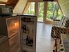 Гостиная: кондиционер. Кухонная зона: холодильник, комплект посуды на четыре персоны, СВЧ-печь, стол, стулья. Терраса: стол, стулья, мангальная зона. Удобства: душ, туалет. Дополнительно: тапочки, полотенце, умывальные принадлежности, мини-бар (платно).