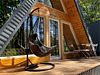 С террасы открывается живописный вид на сосновый лес и закат! На террасе для Вас стол и стулья, кресло-качели, вечерняя подсветка. Индивидуальная мангальная зона с принадлежностями рядом с домом.