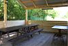 В беседке могут разместиться до пятнадцати человек. Внутри есть электричество и освещение, что позволяет пользоваться ею в течение всего дня. Рядом с беседкой установлен мангал, который дает возможность готовить еду на свежем воздухе.