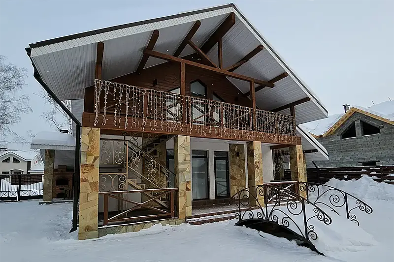 Двухэтажный дом в стиле альпийского шале предлагает для проживания однокомнатные и двухкомнатные номера, в которых есть все необходимое для комфортного отдыха. Открыто для посещения кафе, во дворе есть зона барбекю. Гости могут воспользоваться банным комплексом с бассейном. Для Вашей безопасности территория отеля оборудована системой видеонаблюдения.