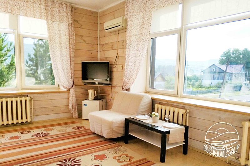 Одна 2-х спальная кровать, мягкая мебель, холодильник, чайник, кондиционер, ж/к телевизор 32", душевая кабина, платяной шкаф,wi-fi. Ежедневно гель для душа, шампунь, чай+сахар (1 раз в день) площадь номера 30 м2 (в т.ч. с/у)