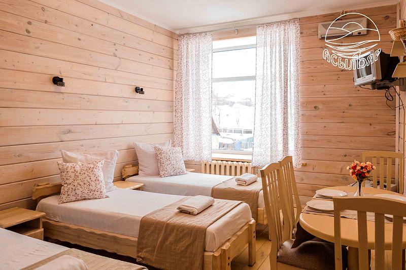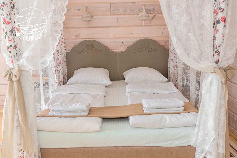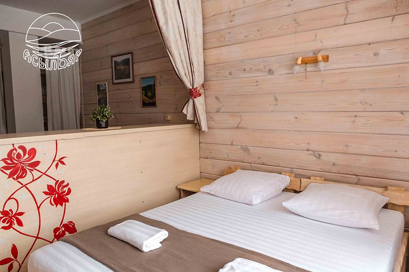 Для размещения гостей предлагается 4-этажный корпус базы отдыха с номерами различных категорий от стандартных до люксов. Все помещения отделаны экологичными натуральными материалами без использования пластика. В каждом номере есть необходимая мебель, включая кровати и мягкую зону в зависимости от категории, а также телевизор, холодильник и душевая кабинка в санузле. Номера повышенной комфортности оснащены кондиционерами, фенами и туалетными принадлежностями. Питание предоставляется в столовой, где используются только натуральные продукты от местных производителей.