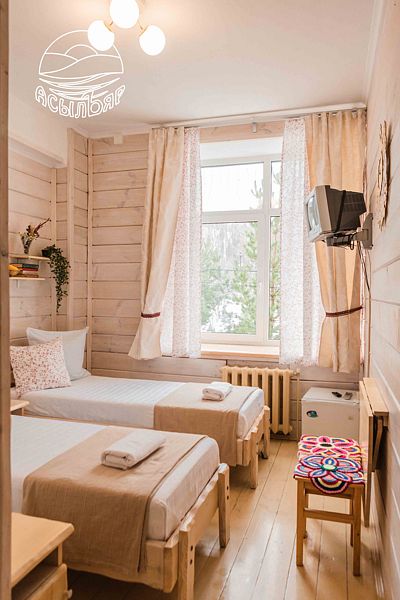 Две односпальные кровати, телевизор, холодильник, санузел, душевая кабина, wi-fi, платяной шкаф, вентилятор, площадь номера 13 м2 (в т.ч. с/у)
