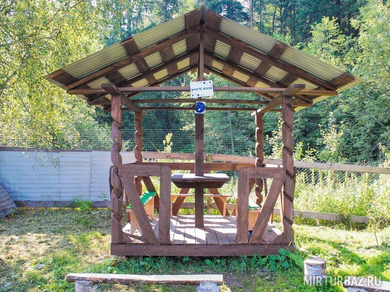 Готовить можно самостоятельно или питаться в столовой. Оборудованы мангальные зоны. Туалет и вода есть в каждом доме, а также на территории. Также есть душевые кабины и баня. Можно заказать услуги проводника на Зубы Шурале, пик Уфа, Борисовы печи.