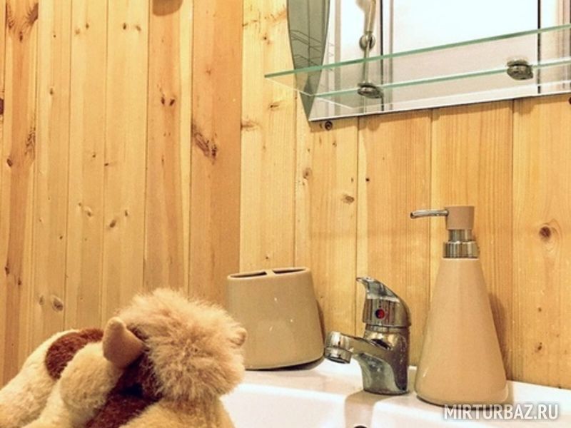 На первом этаже располагается общий холл, кухня для самостоятельного приготовления пищи, душ и туалет. На втором этаже находятся 4 спальни. Также на втором этаже есть балкон, с которого открывается великолепный вид на горную речку Айгир.