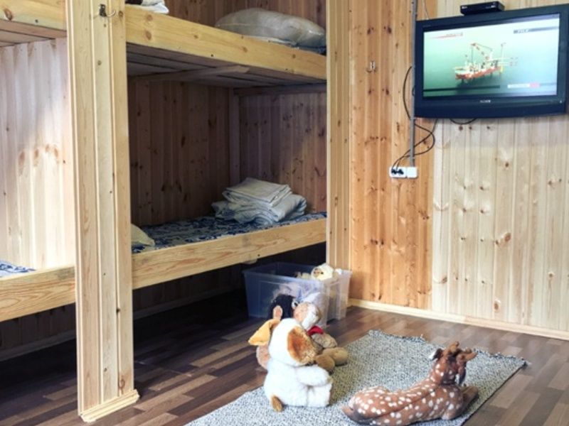 Шестиместная комната повышенной комфортности с отдельным санузлом и душевой кабиной. Хороший вариант размещения для семьи с детьми.