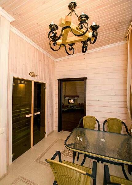 Роскошный двухэтажный дом (столовая, гостиная и две спальни) с просторной гардеробной и кухней для приготовления приватных обедов. В гостиной – белый кожаный диван, кресло для релаксации, низкий журнальный стол и обеденная зона. Сочетание респектабельной классики и современных дизайнерских элементов. Обилие изысканных светильников позволяет создать нужную атмосферу. В гостиной спутниковое ТВ с широким плазменным телевизором, бесплатный проводной и беспроводной интернет. Две ванные комнаты, одна из них с изысканной ванной на ножках, вторая с просторной душевой кабиной. На втором этаже удобное рабочее место. А также уютная каминная и великолепная сауна.