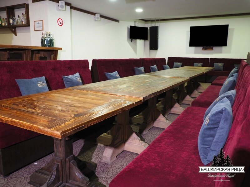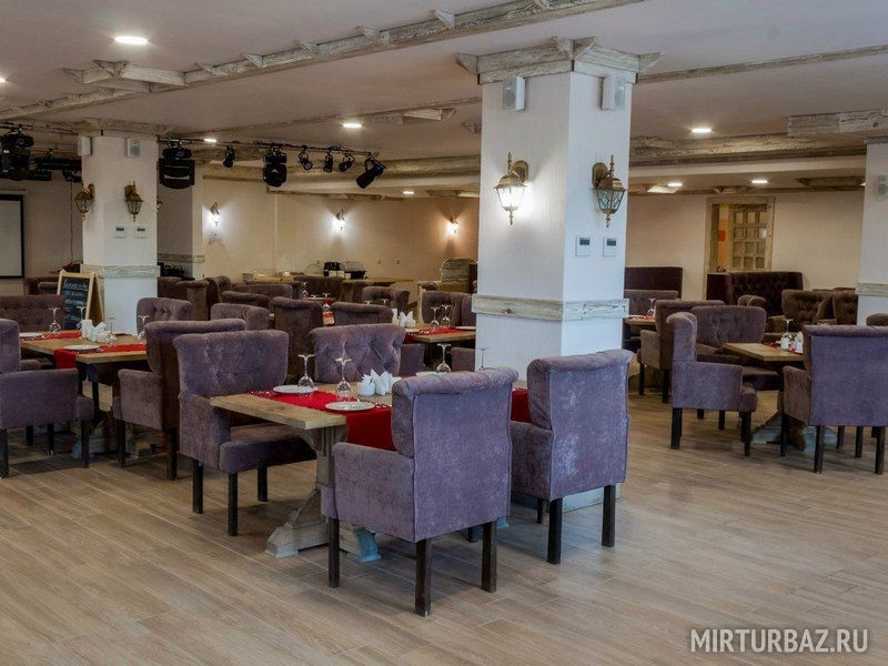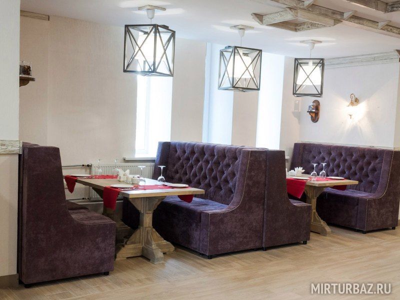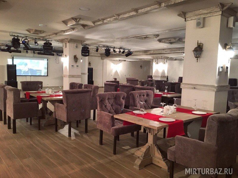 Интерьер ресторана в классическом стиле создает атмосферу комфорта и элегантности. Это удачное решение для проведения банкетов, корпоративных мероприятий и свадебных торжеств.