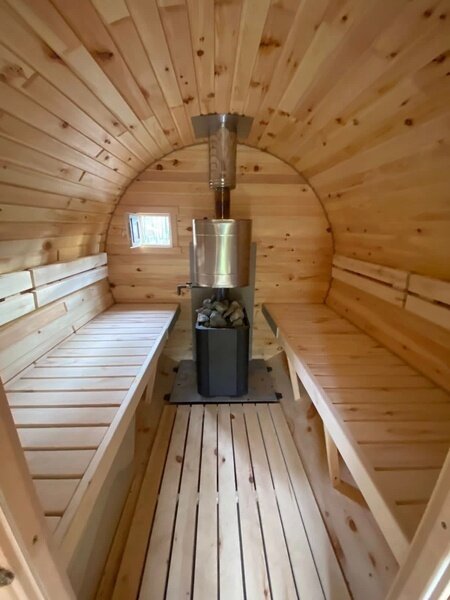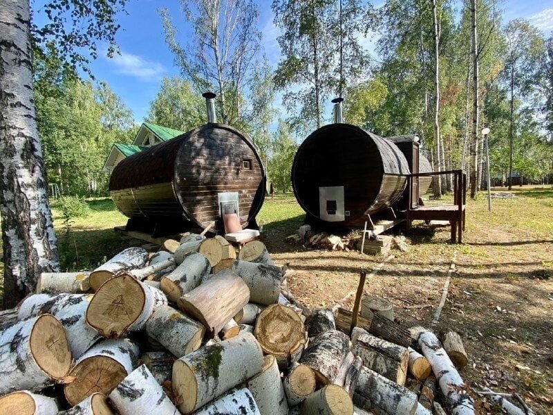 Здесь вы найдете 2 уютные бани-бочки: маленькую до 4-х человек и большую до 8-и человек.