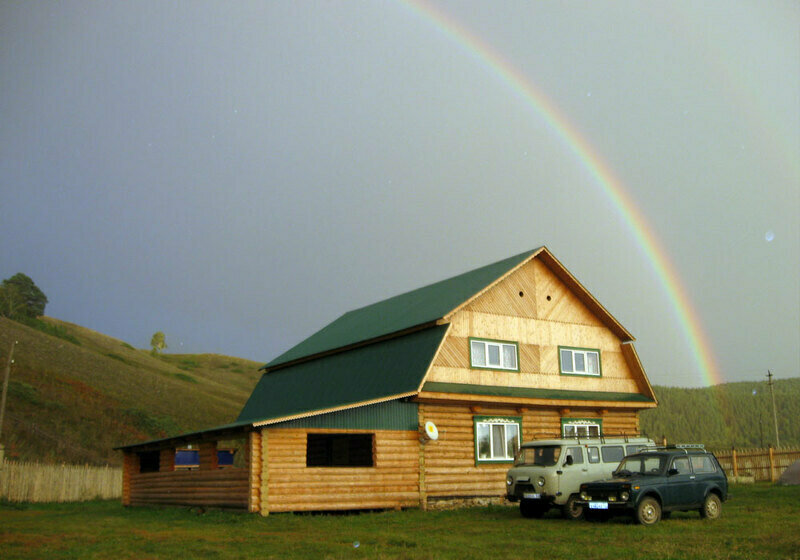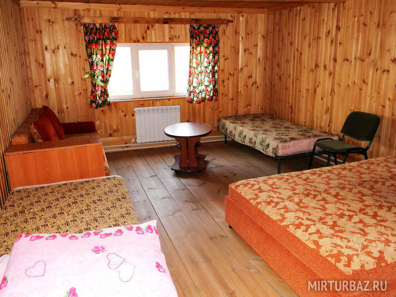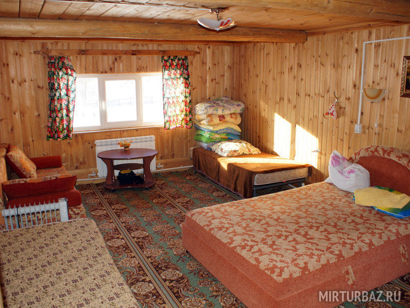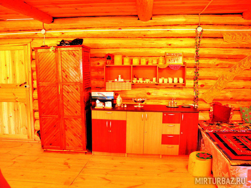 Со всеми удобствами, оформленный в национальном башкирском стиле с элементами старины. 2 этажа. На первом этаже большая гостиная-столовая, спутниковое ТВ, муз. центр, кухня и санузел.