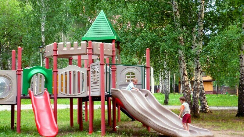 На территории базы отдыха стоит детская площадка, чтобы ваши дети могли весело проводить время, играть с другими детьми. Площадка отвечает всем требованиям безопасности и отлично видна с берега.