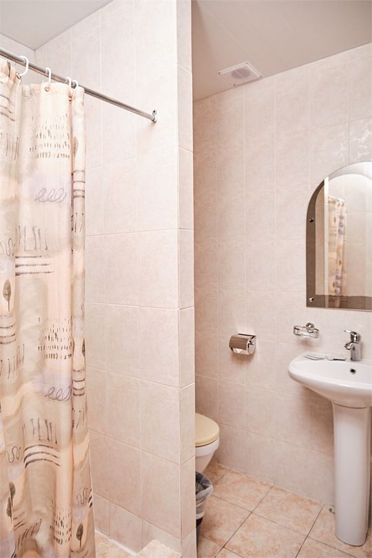 Санузел: душ, умывальник, фен, унитаз, зеркало, комплект полотенец, индивидуальные косметические наборы (мыло, шампунь, гель для душа выкладывается на заезд и по требованию).