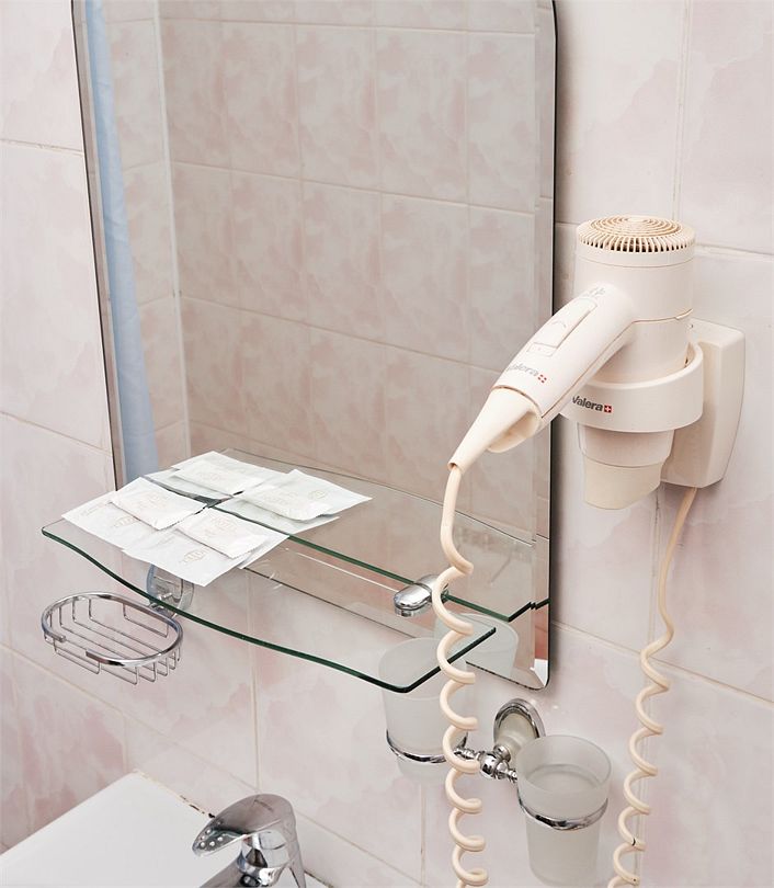 Санузел: душ, умывальник, фен, унитаз, зеркало, комплект полотенец, индивидуальные косметические наборы (мыло, шампунь, гель для душа выкладывается на заезд и по требованию). Номер с балконом.