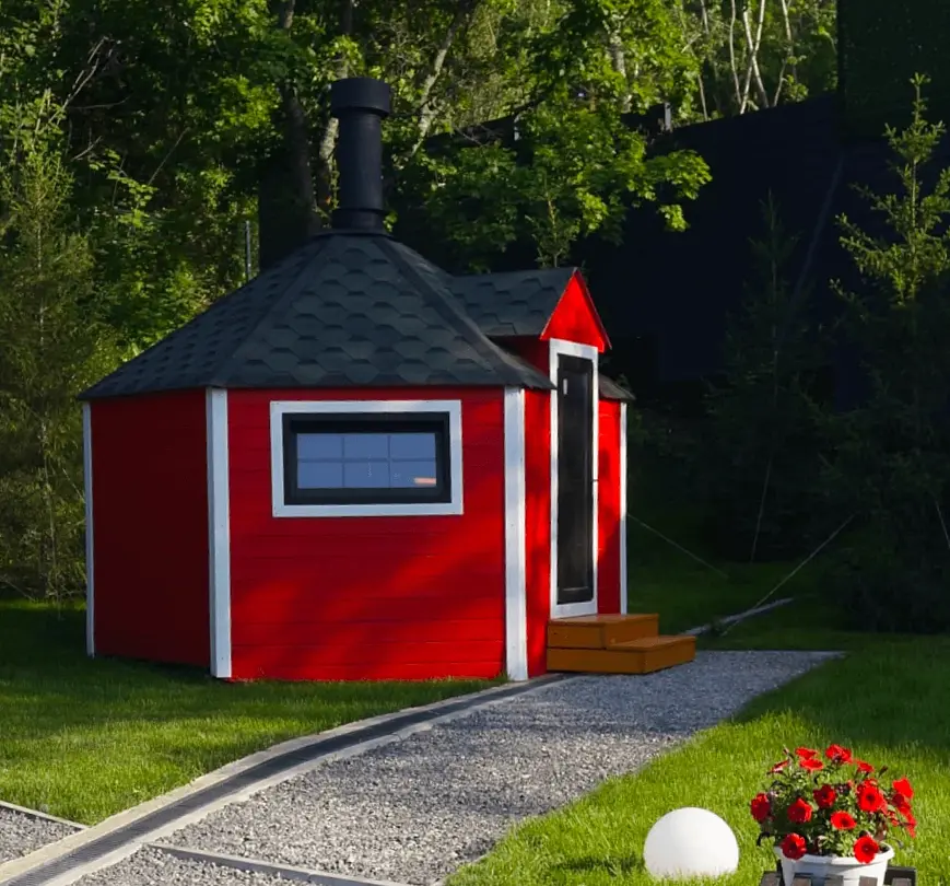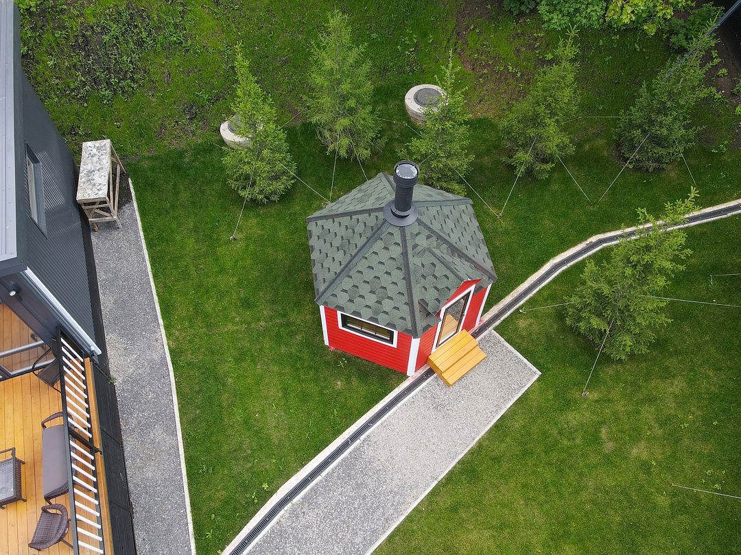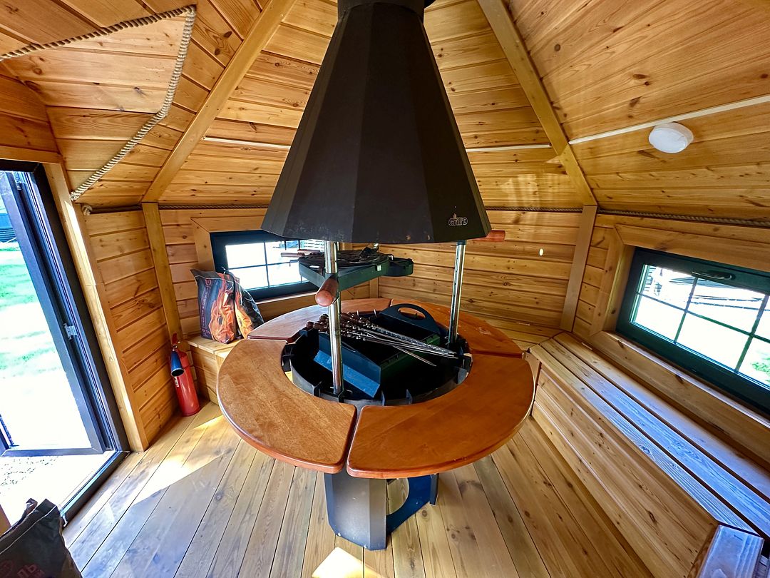 Внутри — удобные скамейки, столы и главное — очаг, вокруг которого так приятно собраться компанией. Здесь всегда тепло, вкусно пахнет дымком и царит особая, почти сказочная атмосфера. Готовьте мясо, овощи или рыбу, не думая о погоде — гриль-домик защищён от ветра, дождя и снега. Комфортно в любое время года, хоть летом, хоть в морозный вечер.