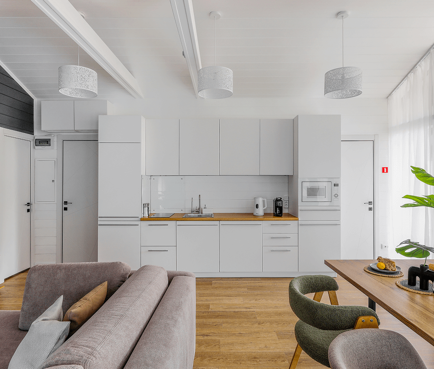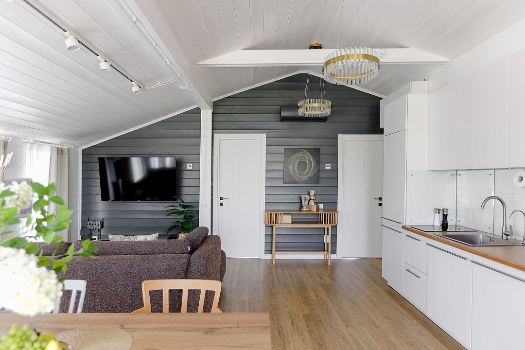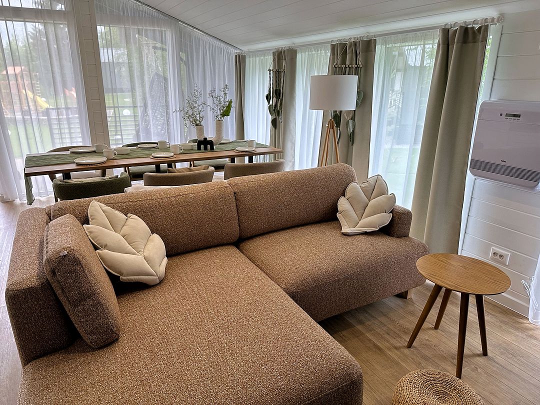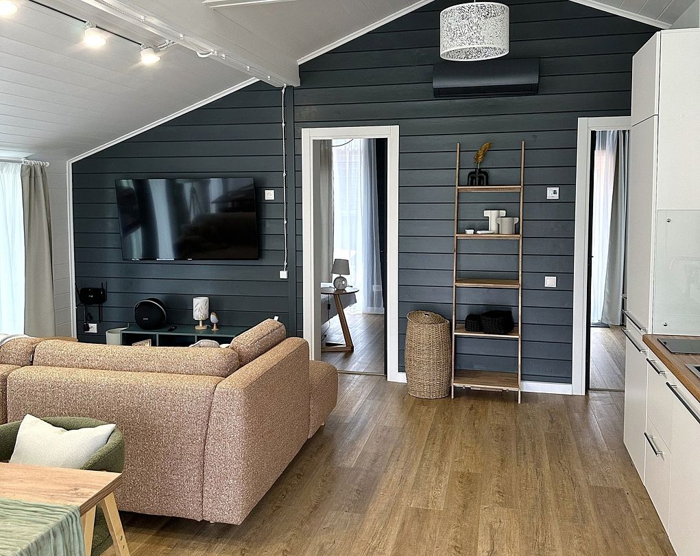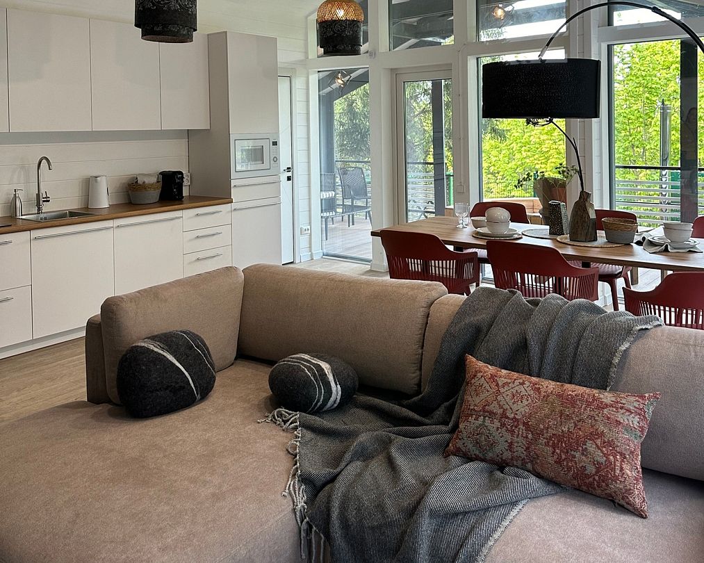 - проживание в стильном доме с 3 спальнями, просторной гостиной и кухонной зоной. Фильтр для воды, посуда, ванные принадлежности, бризер, увлажнитель воздуха, бытовая техника, сейф для ценных вещей и теплый пол;