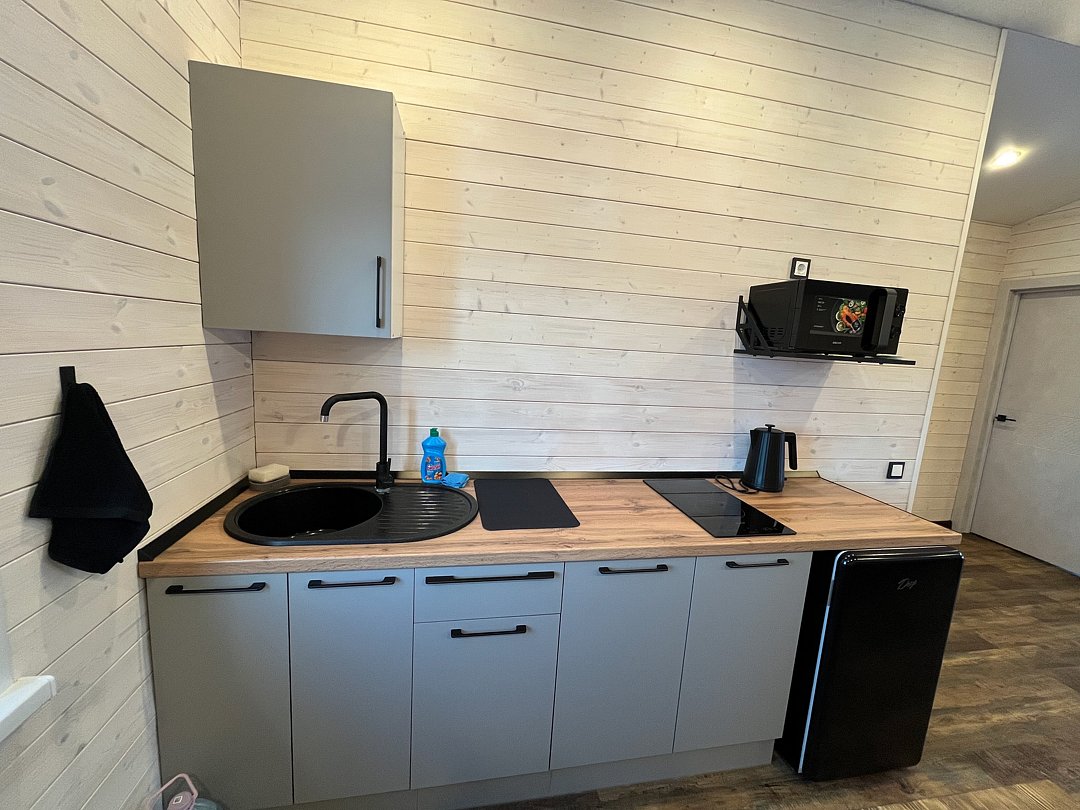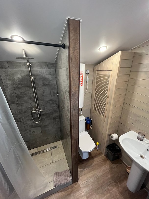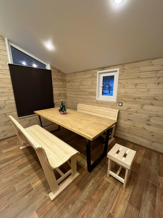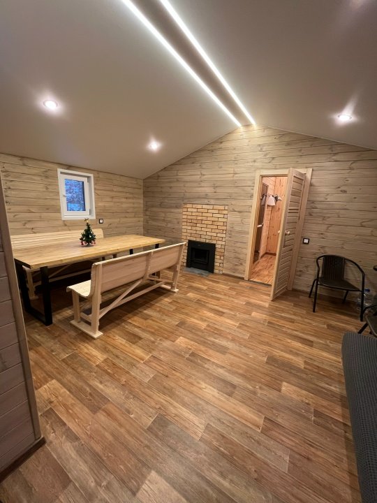 Дом-баня, большая баня до 8 человек, если снимаете на ночь, то есть раскладной диван, кухня, туалет, душ.