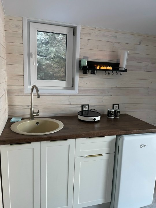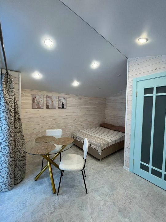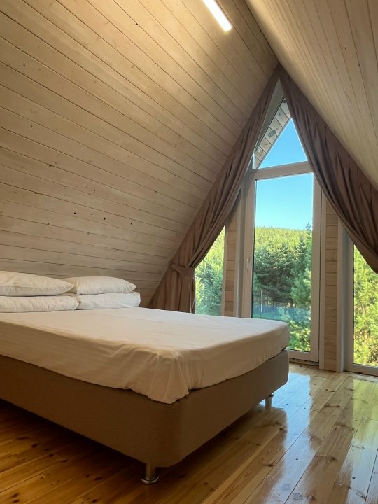 Двуспальная кровать, кухня со всем необходимым, душ, туалет. Мангальная зона, терраса.