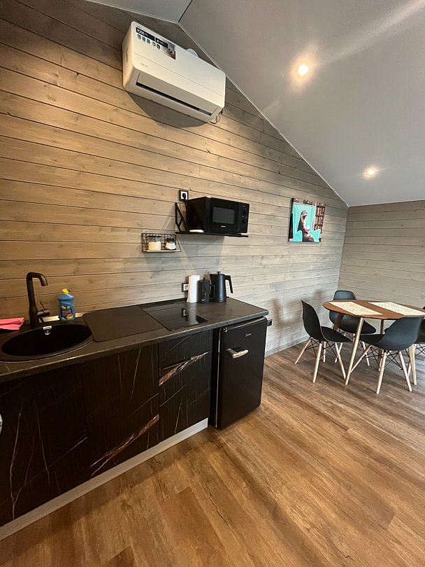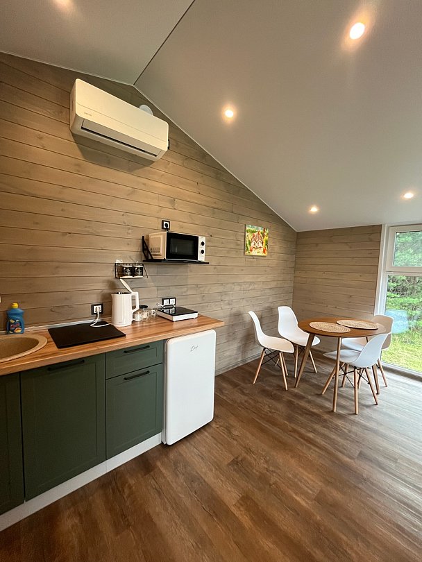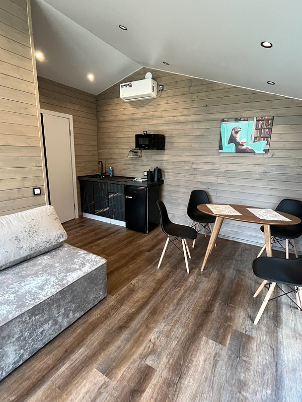 Здесь вас будут ждать уютные домики различной вместимости, бытовые удобства, чистый воздух, и, конечно, живописные окрестности леса и чувство уединения. Также можно расслабиться с баньке и заказать горячий банный чан.