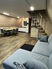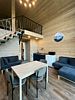 Спальня с двуспальной кроватью на первом этаже, двуспальная кровать и диван раскладной, на втором этаже. На кухне все необходимое для приготовления еды. Кондиционер, тёплый пол во всем доме, душ, туалет. Терраса, мангал.