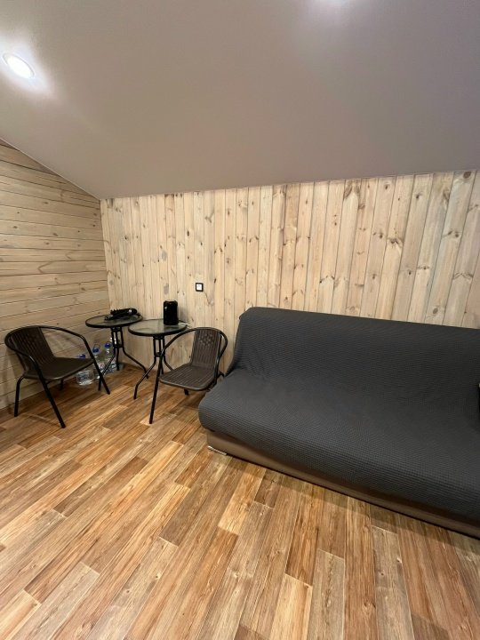 Двуспальная кровать, кухня, туалет, душ. Теплый пол. Мангальная зона, парковка.