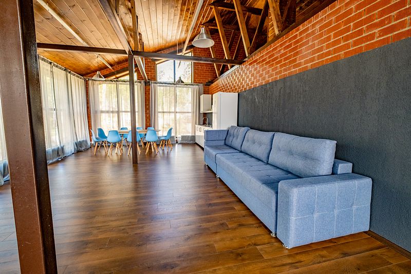 Инфраструктура: купель, зона отдыхаМинимальное время аренды: 2 часаВремя работы: от 09 до 01Двухэтажная баня на дровах, рассчитанная на 12 человек, предлагает уютную зону отдыха и купель, чтобы насладиться полным расслаблением. Интерьер выполнен в экологичном стиле, что создает атмосферу гармонии с природой.