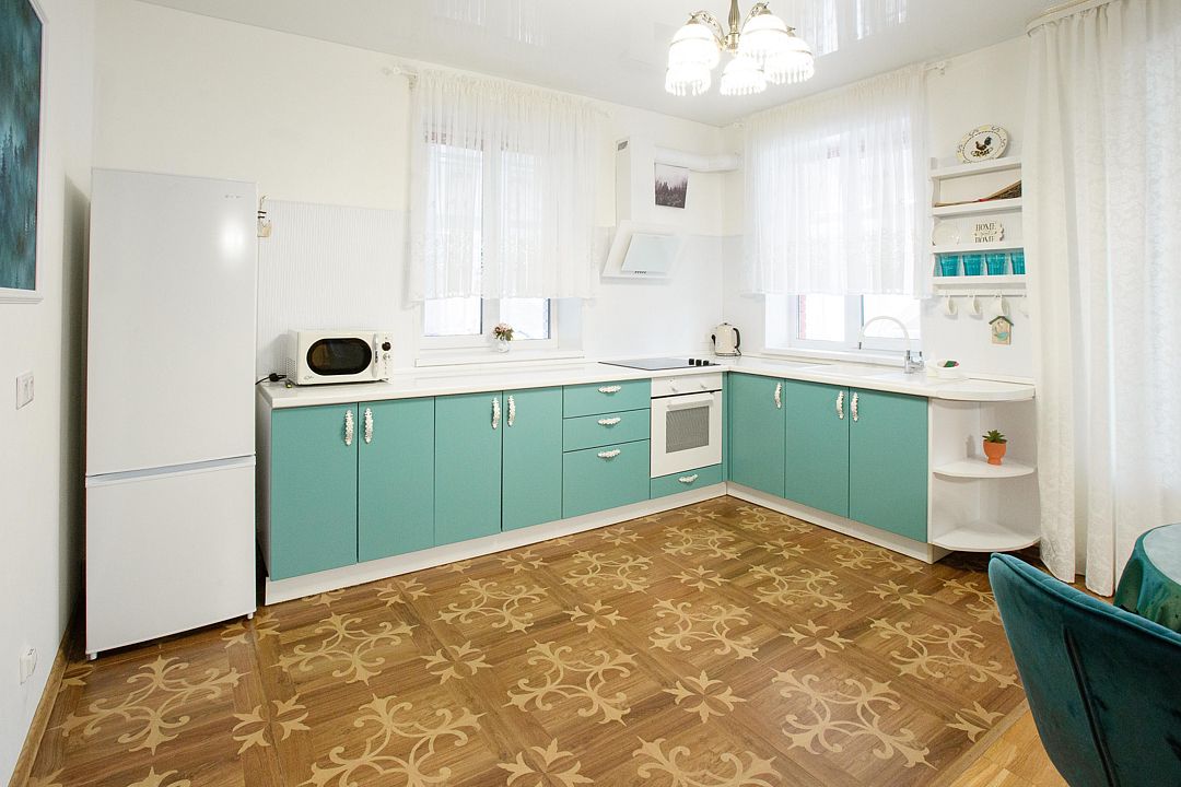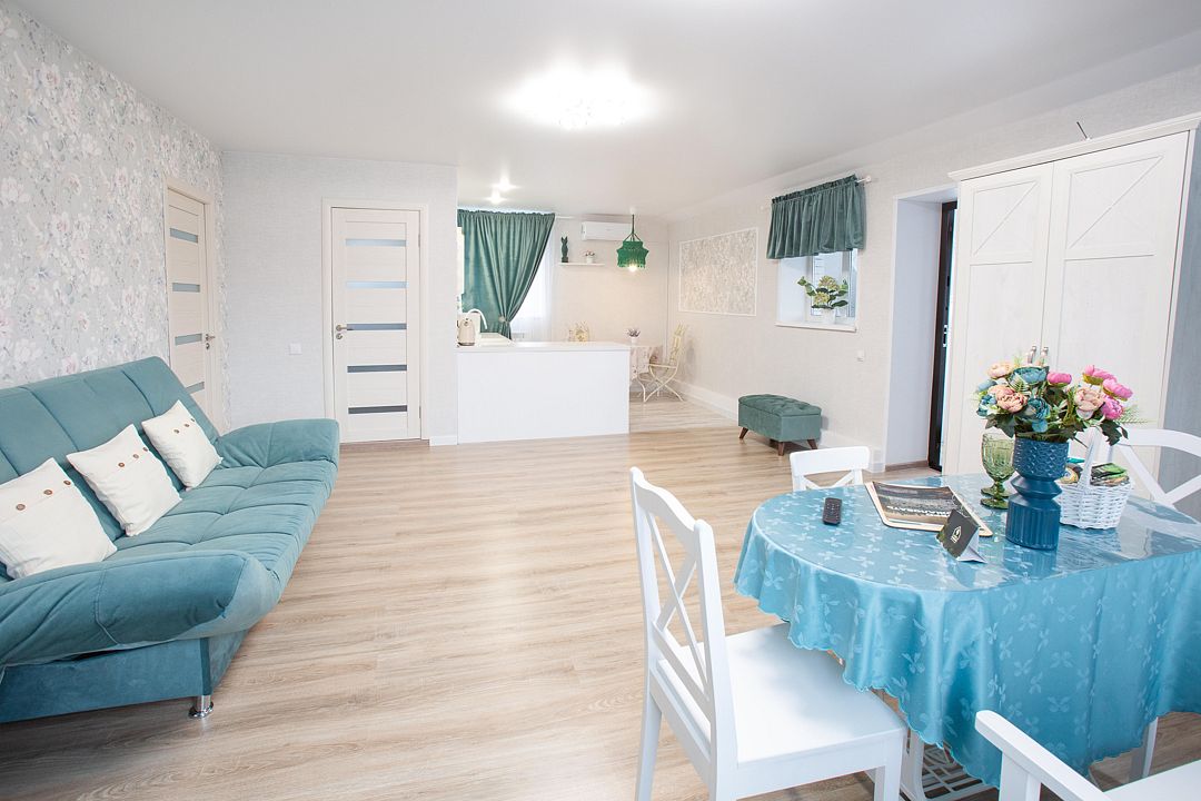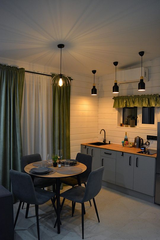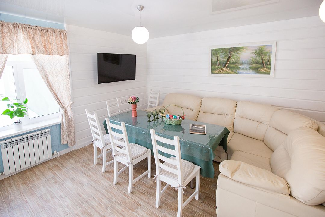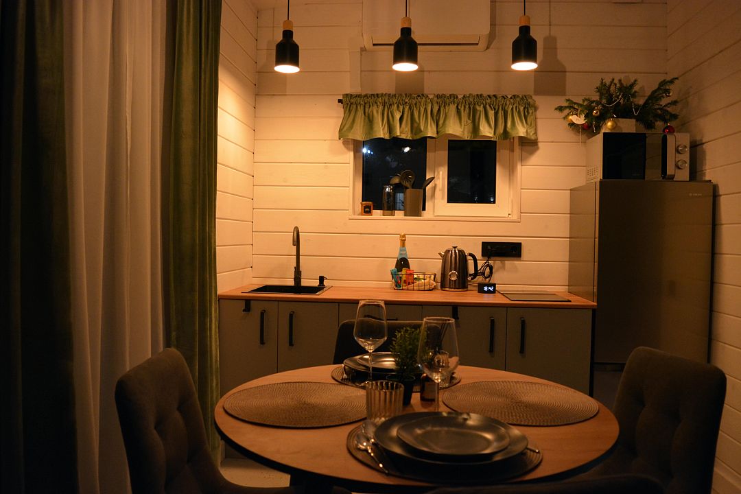В доме вас ждет большая двуспальная кровать и раскладной диван, кухня для приготовления пищи и санузел для удобства. Дополнительно можно воспользоваться банным чаном и баней на дровах.