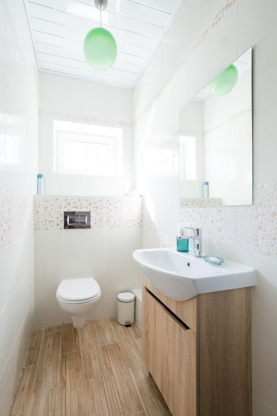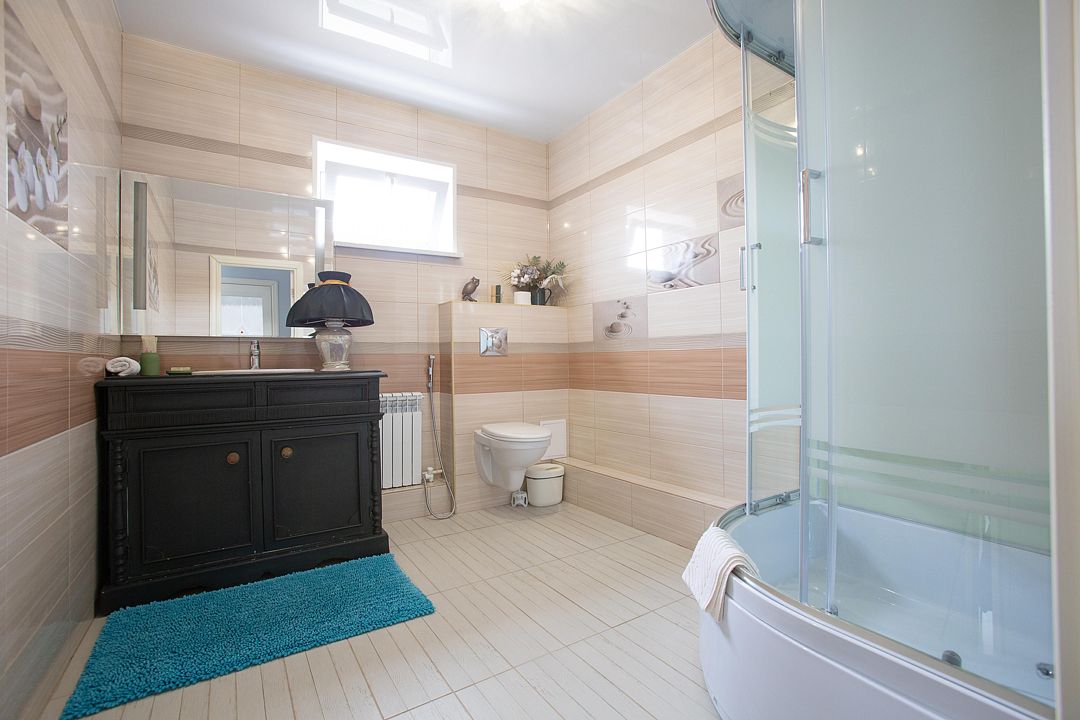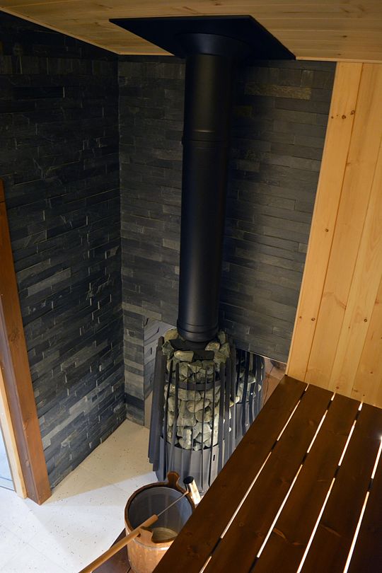 В доме на первом этаже располагается просторная гостиная с камином, сауна с душевой и комнатой отдыха, большая кухня, а также санузел.