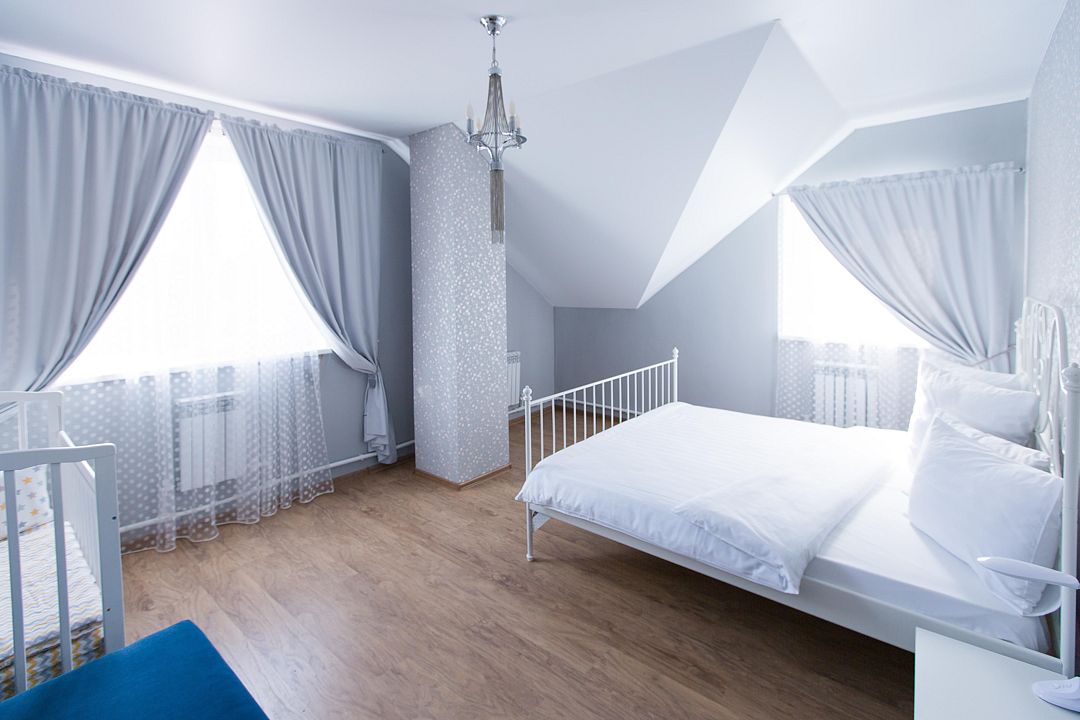- спальня с большой двуспальной кроватью и детской кроваткой;