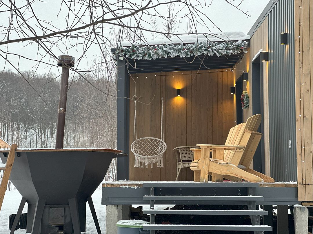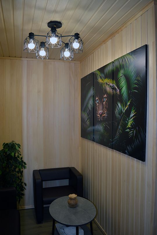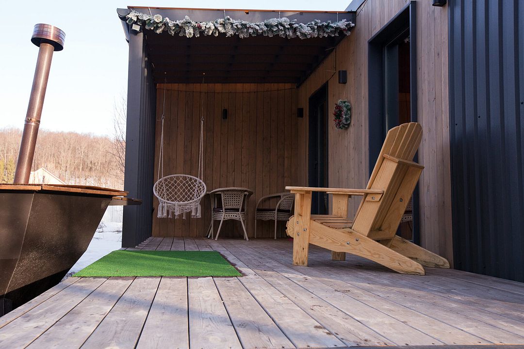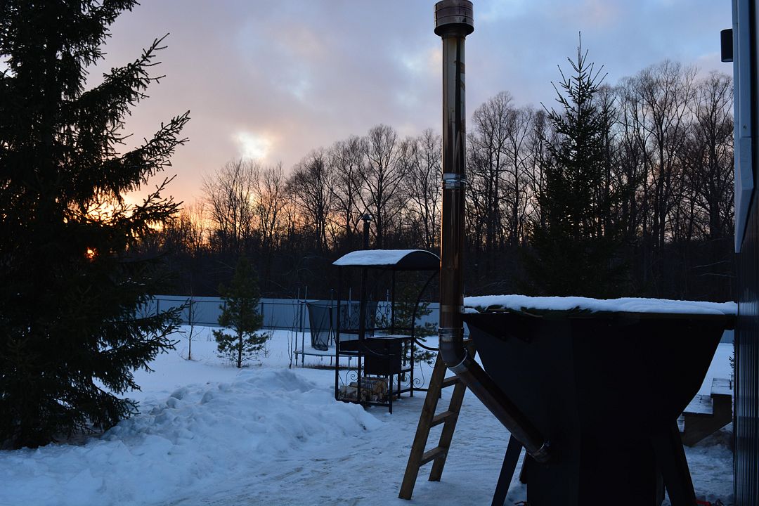 Гости могут насладиться банным чаном, который расположен рядом с модульной баней. Это идеальное место для купания в горячем чане на свежем воздухе, что создает неповторимую атмосферу расслабления и отдыха.