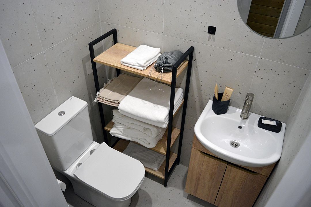 Для детей предусмотрен детский уголок, оборудованный столом, стульчиками и игрушками. Кроме того, есть санузел и душевая кабина.