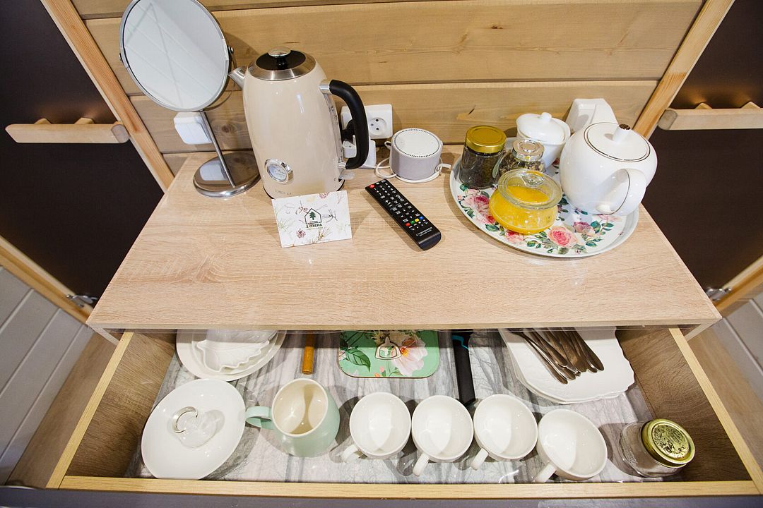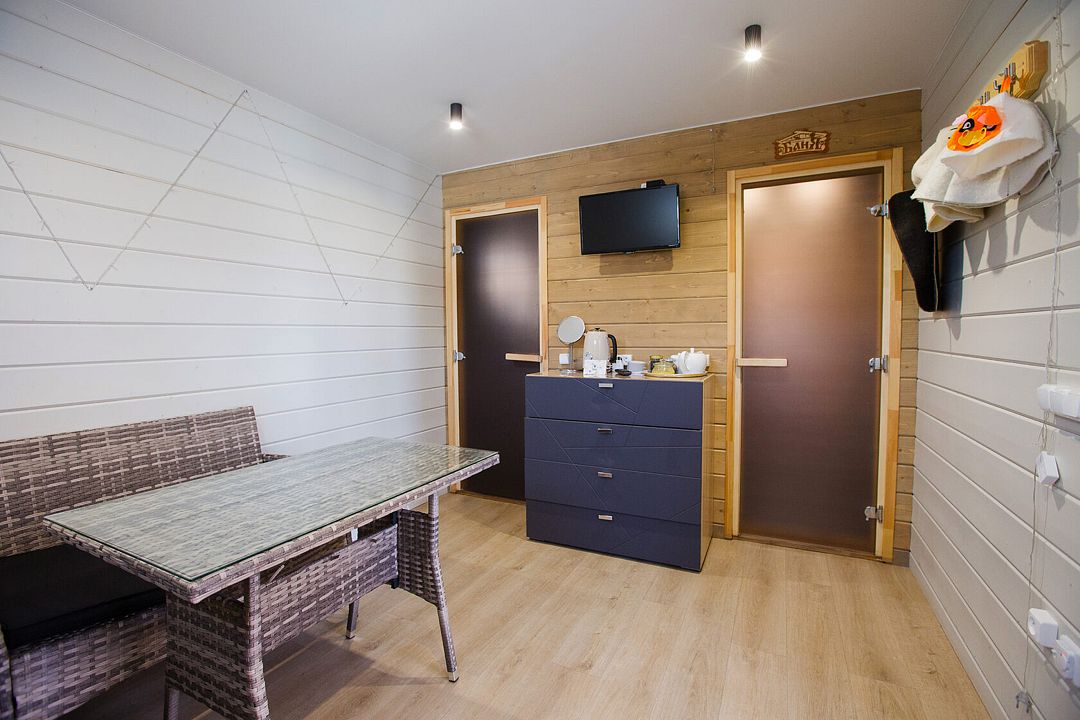 Инфраструктура: полотенца, душ, халатыГости, остановившиеся в «Лесном отеле», могут воспользоваться сауной, расположенной внутри домика. В стоимость проживания включены три часа пребывания в сауне, что позволит гостям расслабиться и восстановить силы в спокойной обстановке.