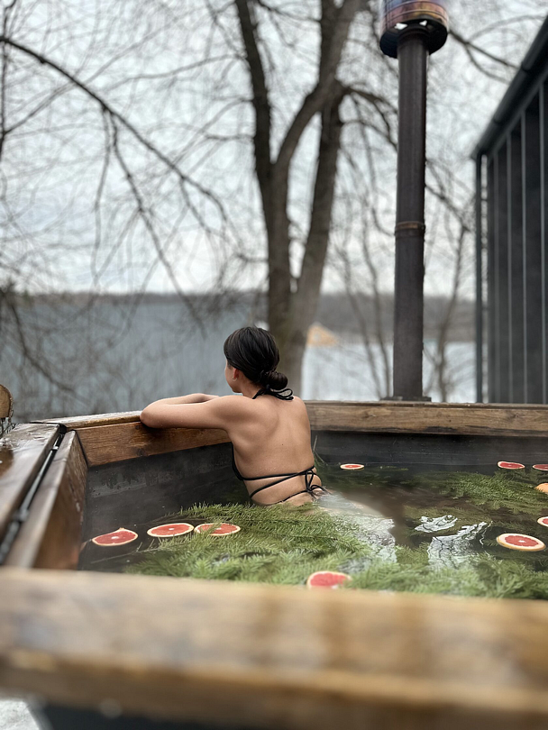 Для особого удовольствия предлагается наполнение чана эфирными маслами пихты и грейпфрута, которые обогащают опыт и дарят новые ощущения.