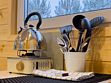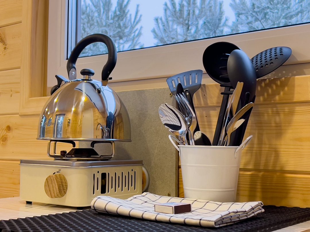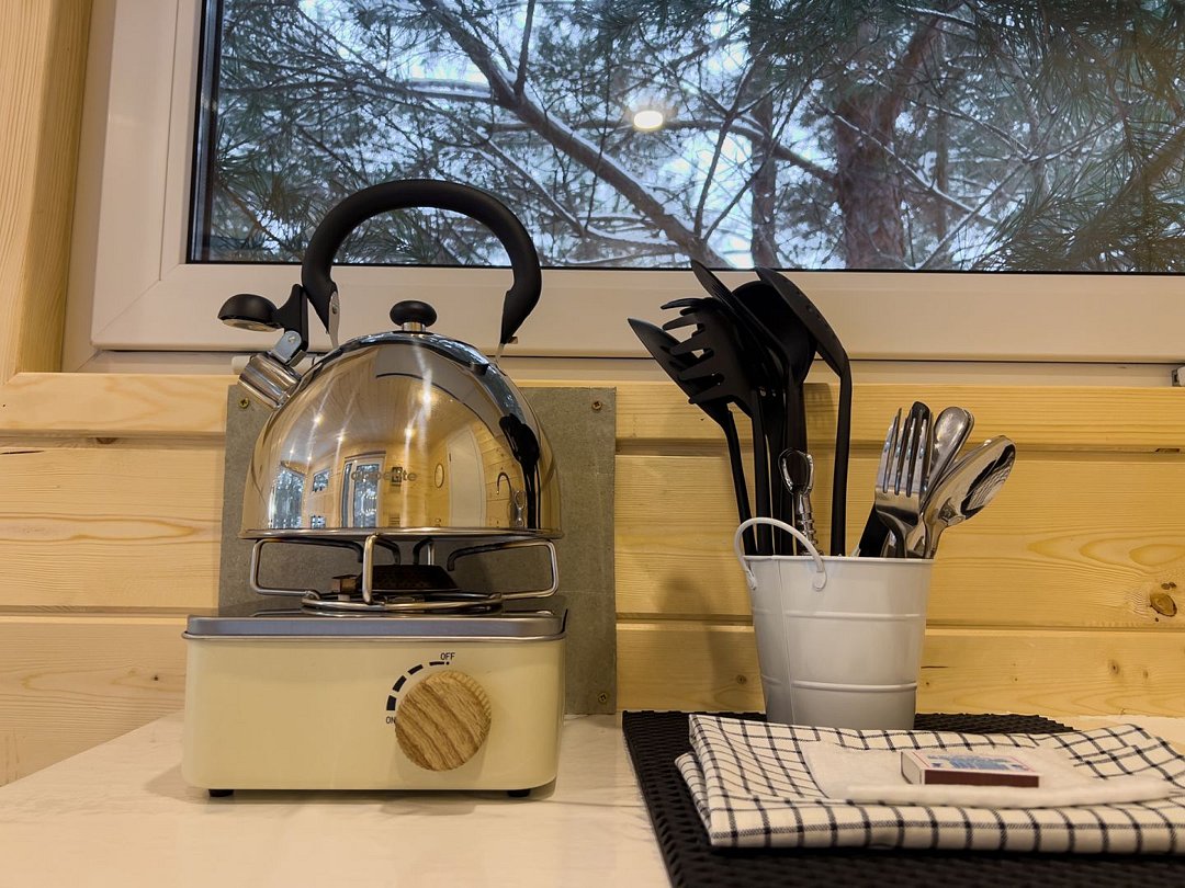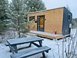 Двухмодульный уютный домик — КИТТЛА. В доме на четырех человек с большими панорамными окнами есть две комнаты, а также кухня, холодильник и санузел с душем, есть терраса с мебелью и все принадлежности для барбекю. Домик оборудован электрическим конвектором, у вас всегда будет тепло!