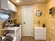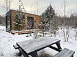 Одномодульный уютный домик — РУСТОН. В доме с большим панорамным окном есть кухня, холодильник и санузел с душем, есть терраса с мебелью и все принадлежности для барбекю. Домик оборудован электрическими конвекторами, у вас всегда будет тепло!