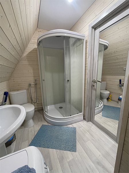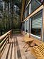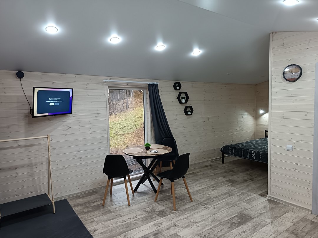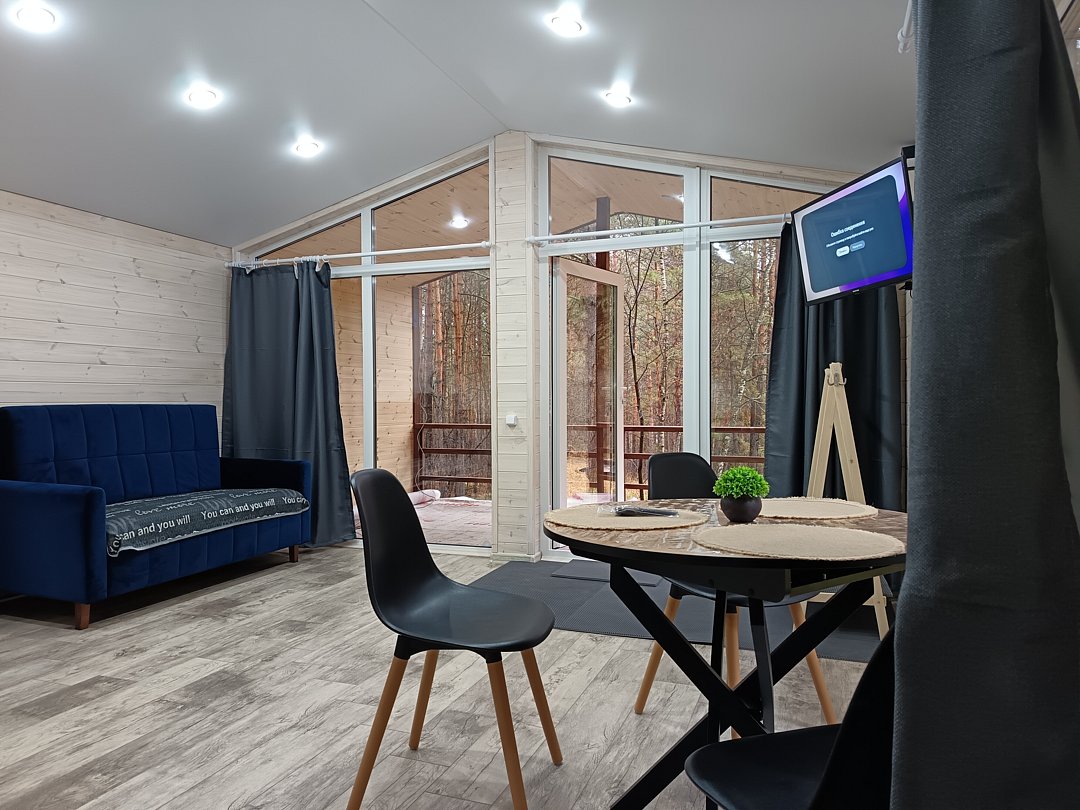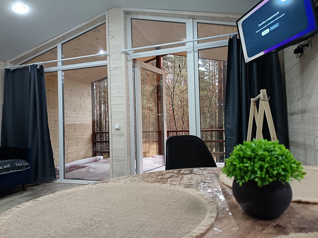 С террасы открывается великолепный вид на горы и лес. Комфортная и уютная баня с панорамным окном обеспечит вам расслабляющий отдых. В домах имеется все необходимое для комфортного проживания, включая дровяные камины, где можно наслаждаться зрелищем пламени. Также в вашем распоряжении медиа-система Яндекс Алиса.