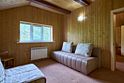 По-домашнему уютный двухэтажный 4-х комнатный номер люкс. 1-й этаж кухня-столовая, 2-й этаж 3 спальни. Кухня: 4-х конфорочная эл. плита с духовкой, СВЧ-печь, вся посуда, холодильник, эл.чайник, вентиляция, теплые полы, ТВ, мягкая мебель. В номере 2 сан.узла: душ. кабина, биде, эл. водонагреватель, мойка, унитаз, теплые полы, сушилка для белья. Вход на 2-й этаж по деревянной лестнице. Две отдельные спальни с 2-х спальными кроватями, в третьей-раскладные диван и кресло, ТВ. Прихожая: стойка для лыж и сноубордов, зеркало, теплые полы. Отделка номера в стиле загородного деревянного дома. Полы: 1-й этаж керамическая плитка с подогревом, 2-й этаж ковровое покрытие с подогревом. Вид из окон на сосновый бор и горную речку.