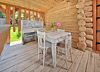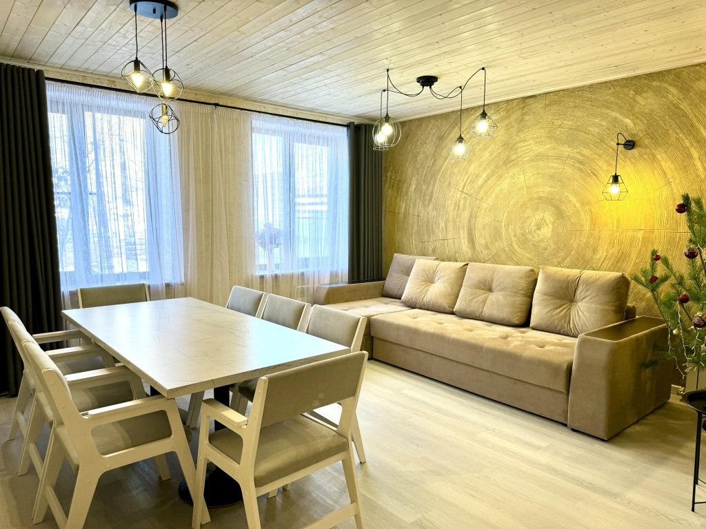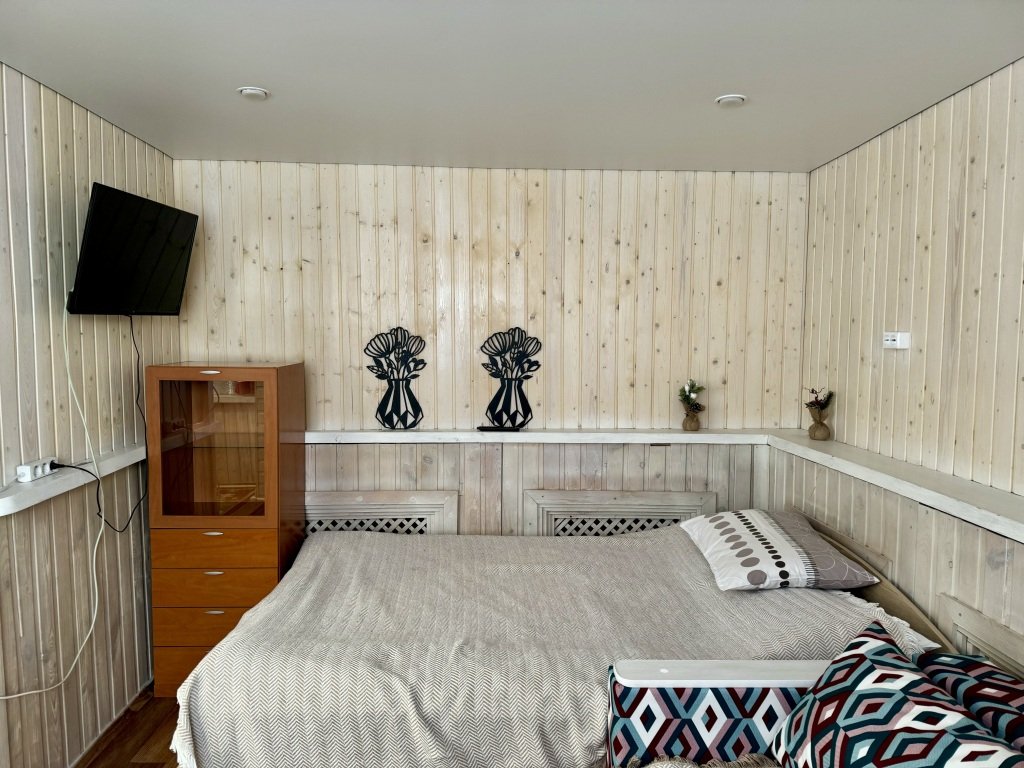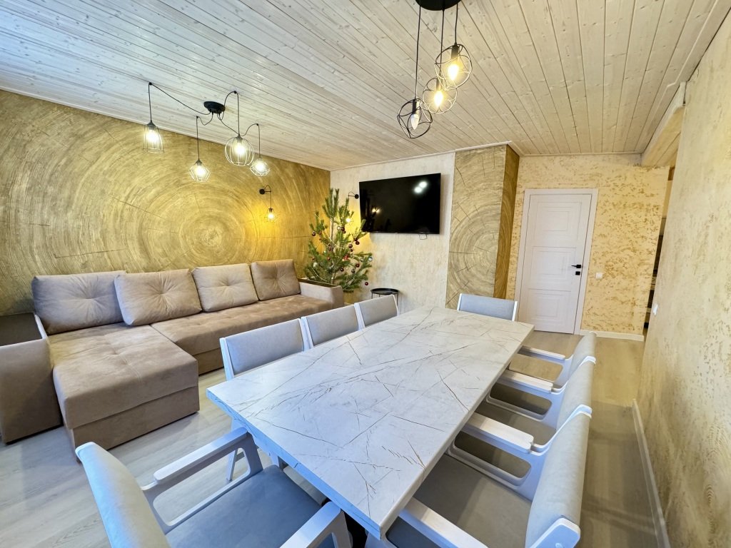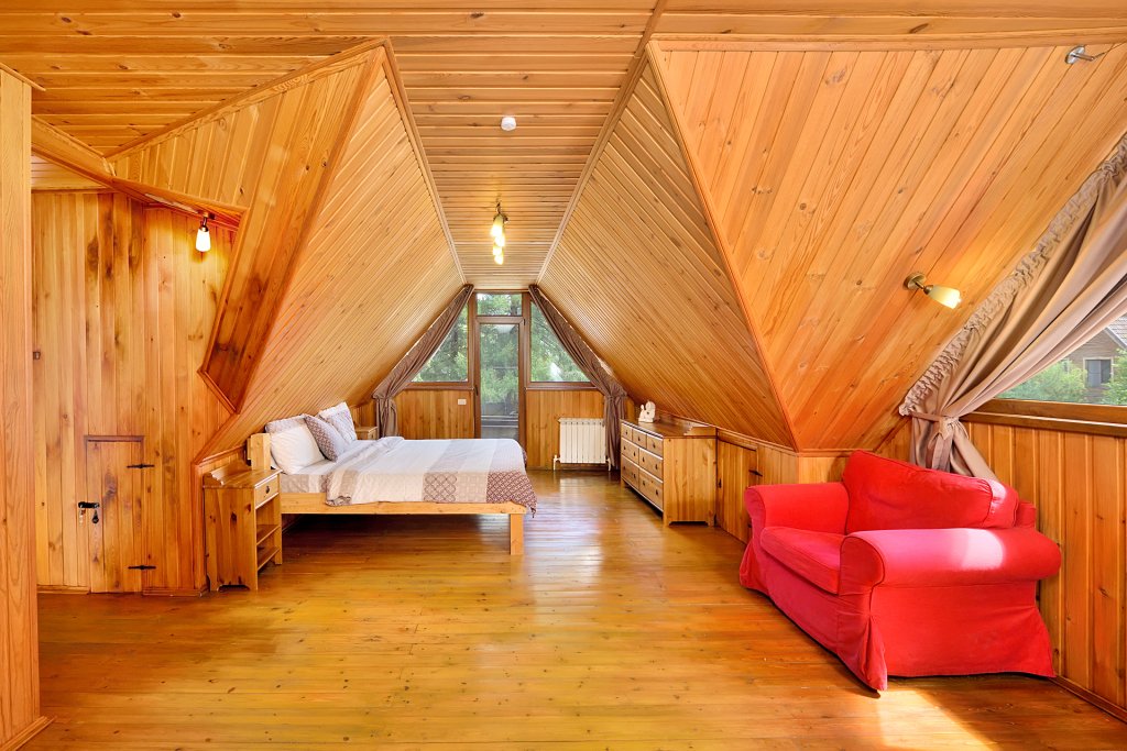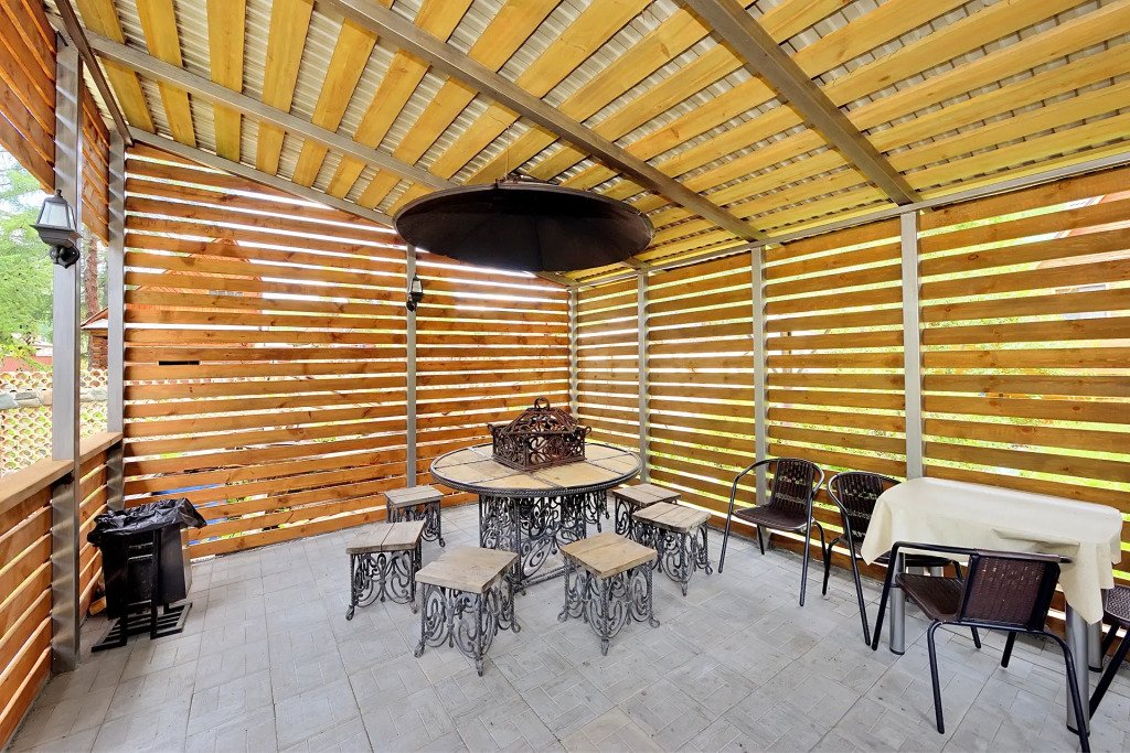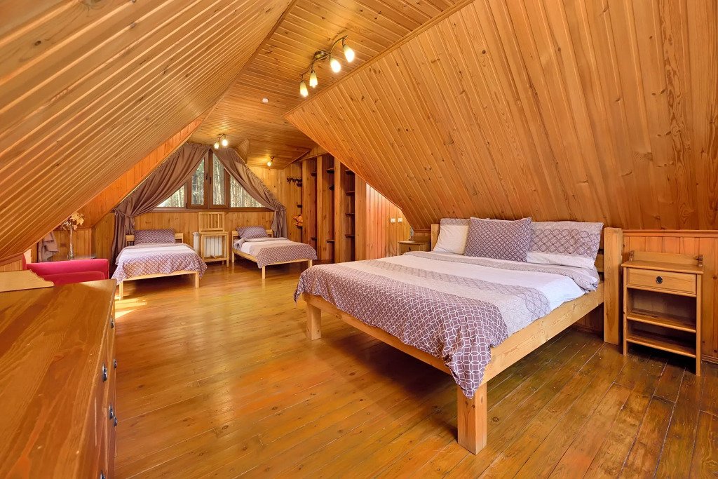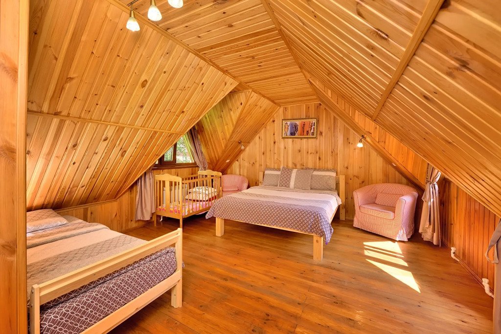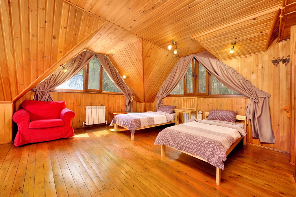 Первый домик (180 кв. м.) рассчитан на 13 человек (9 основных и 4 доп. места). Здесь есть 3 спальни, 3 санузла с душевыми, кухня-гостиная. Территория — 12 соток, парковка на 6 машин, веранда и беседка. Второй домик (70 кв. м.) с вместимостью до 8 гостей (6 основных и 2 доп. места) имеет 2 спальни, 1 санузел с душевой зоной и кухню-гостиную. Территория — 9 соток, парковка на 3 машины, мангальная зона. Третий домик (30 кв.м) рассчитан на 4 человек (2 осн. и 2 доп. места). Имеется действующая обычная печь, при этом сам дом отапливается газовым котлом. Территория — 6 соток, парковка на 2 машины, мангальная зона, беседка.