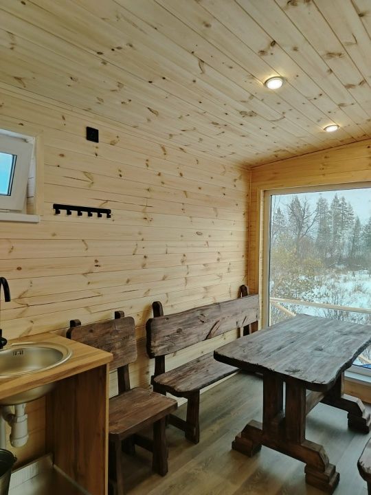 Инфраструктура: чанБаню с панорамным видом на лес и банным чаном для 6 человек.