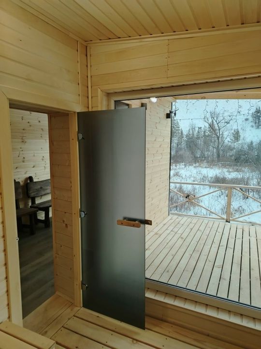 Баню с панорамным видом на лес и банным чаном для 6 человек.