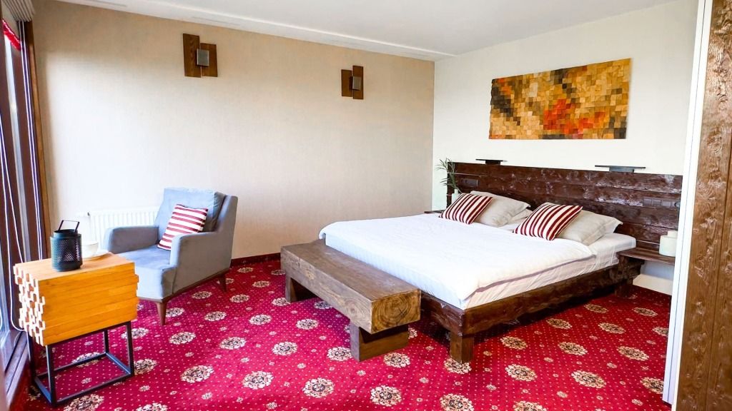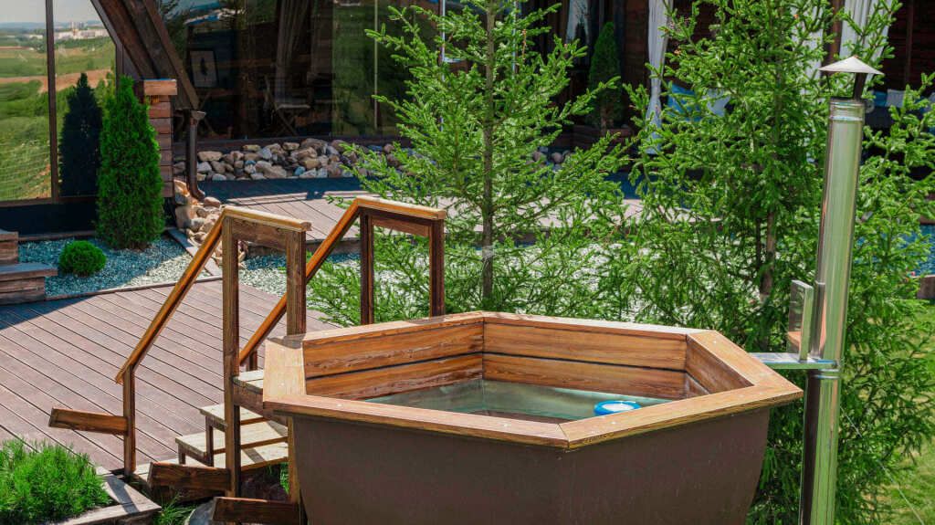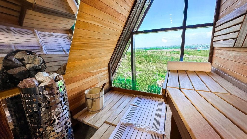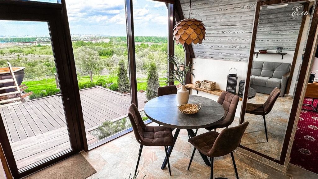 Вместимость до 6 человек + неограниченное время использования. Чан доступен при бронировании шале или двухкомнатных апартаментов. Уникальная локация: вид на огни Уфы, закат, лес, ж/д мост и р. Белую.