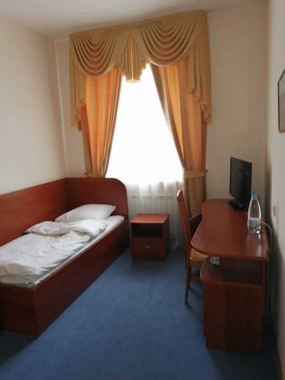 телевизор, кабельное телевидение, Wi-Fi, холодильник, светильник, фен, вентилятор, электронные замки, ванная комната, душевая кабина, санузел, банные полотенца, тапочки, гигиенические средства, косметические средства, односпальная кровать, зеркало, письменные принадлежности, чайный набор, чайник, унитаз, раковина, питьевая вода, отопление, вид на город, кулер на этаже, вид во двор, стаканы, стул, тумба, туалетные средства, туалет, внутренний телефон, мини-холодильник, шкаф-купе, номер для некурящих, рабочий стол, вешалки-плечики, без питомцевВ гостиничном номере