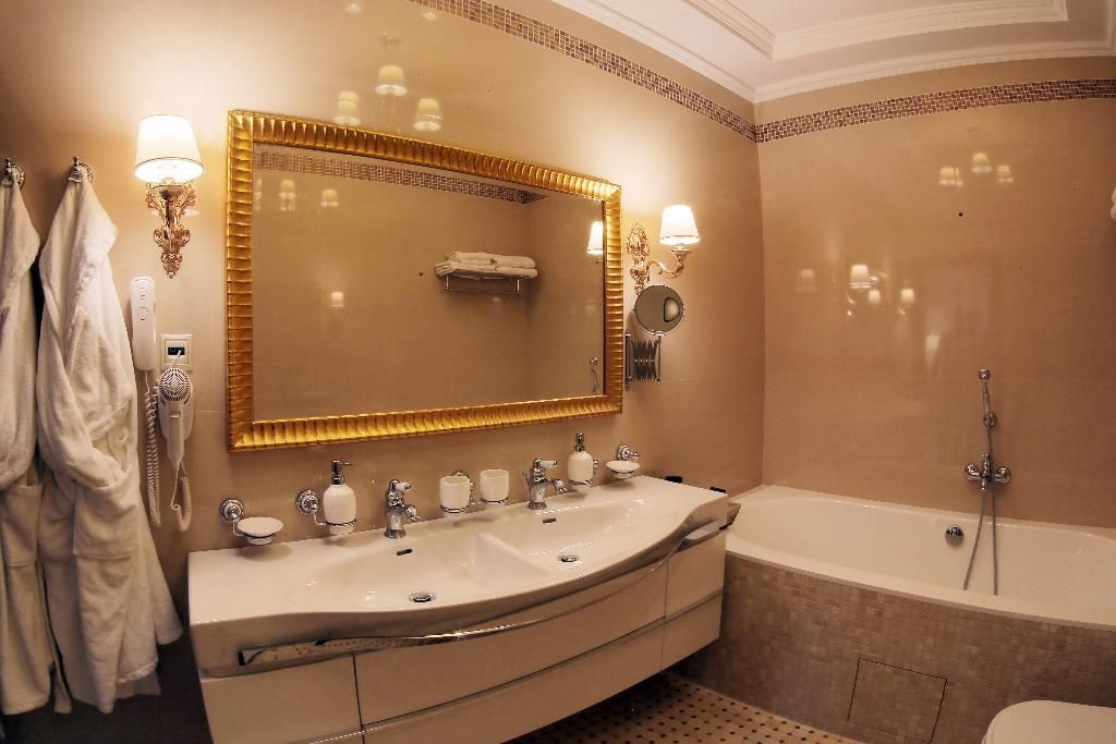 два телевизора, кабельное телевидение, Wi-Fi, настольные лампы, фен, электронные замки, факс, ванная комната, душевая кабина, ванна, санузел, дополнительный санузел, халаты, банные полотенца, тапочки, кровать «King size», гладильная доска, диван, кресла, тумбы, стулья, шкаф для одежды, вешалки, журнальный столик, письменный стол, обеденный стол, зеркало, комод, мебельный гарнитур, письменные принадлежности, чайный набор, набор посуды, чайник, унитаз, раковина, мягкая мебель, гостиная зона, вид на город, три комнаты, кабинет, кресло, вид во двор, стаканы, столовые приборы, стул, стол, тумба, туалетный столик, туалетные средства, туалет, внутренний телефон, мини-холодильник, гостиничная парфюмерия, номер для некурящих, рабочий стол, уборка номера, вешалки-плечики, бутилированная вода, затемняющая штора, не раскладной диванВ гостиничном номере