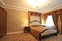 Трехкомнатный VIP номер. Выполнен в светлой гамме и в классическом стиле, включает спальню, гостиную и рабочий кабинет. В гостиной итальянская мягкая мебель, стенка с посудой и барная стойка, также фуршетный столик, а в отдельной зоне большой обеденный стол на 10 персон и настенный телевизор с объемным экраном. В кабинете большой письменный стол с необходимыми принадлежностями, настенный TV и мягкая мебель. В спальне клиентов ждет просторная кровать с тумбочками, шкаф для одежды с аккуратным туалетным столиком, комод и телевизор. В номере два отдельных санузла: один с душевой кабиной, просторной ванной и мягкими халатами, и второй - гостевой.Услуги и удобства