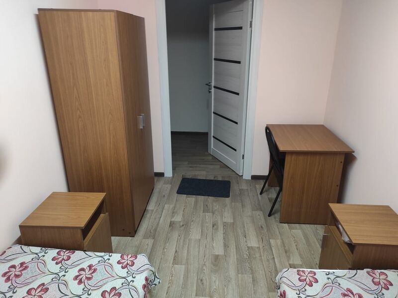 Три комнаты с двумя одноместными кроватями. Санузел общий в здании, кухня с посудой для приготовления еды, отдельный вход, терраса.
