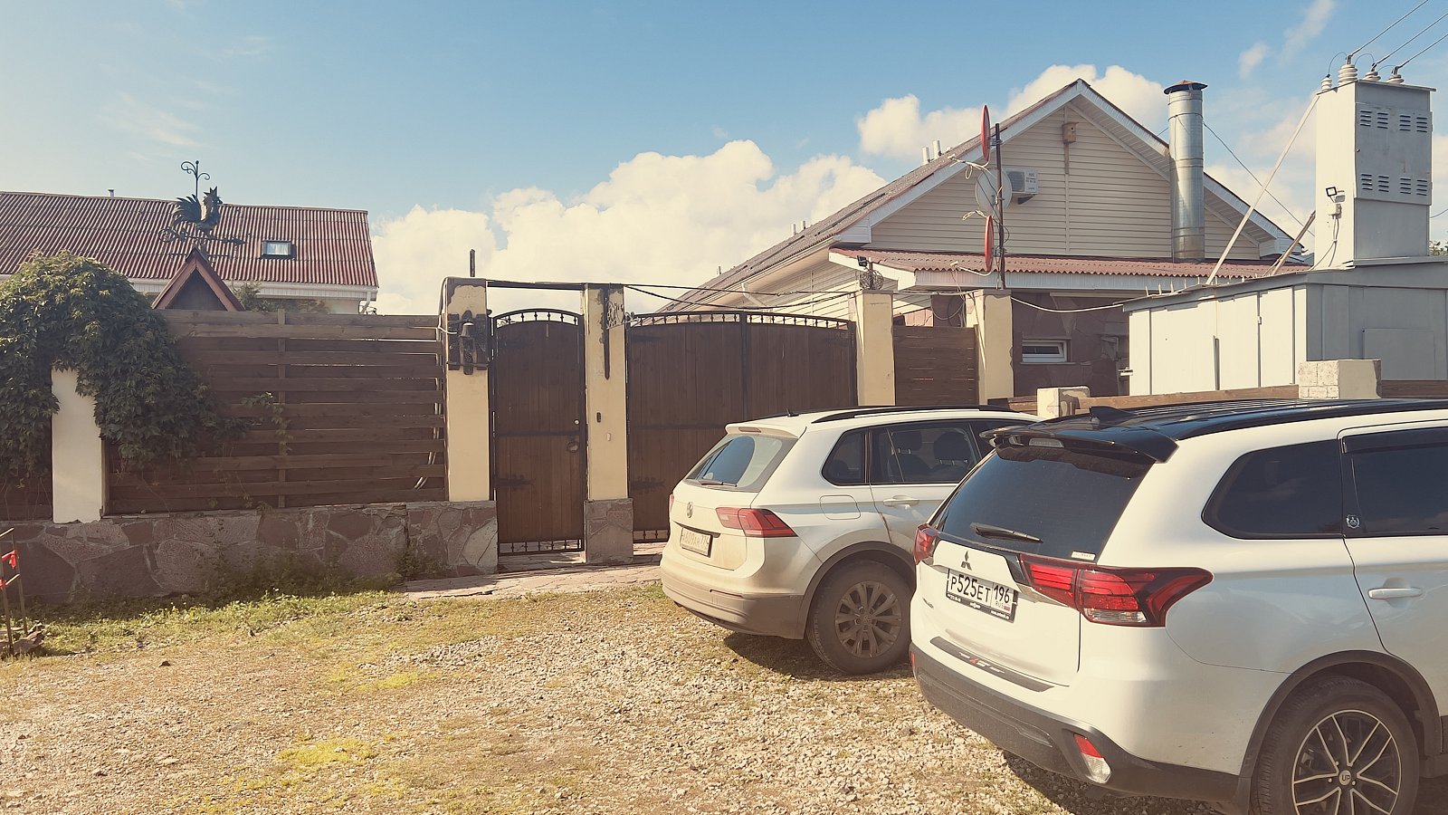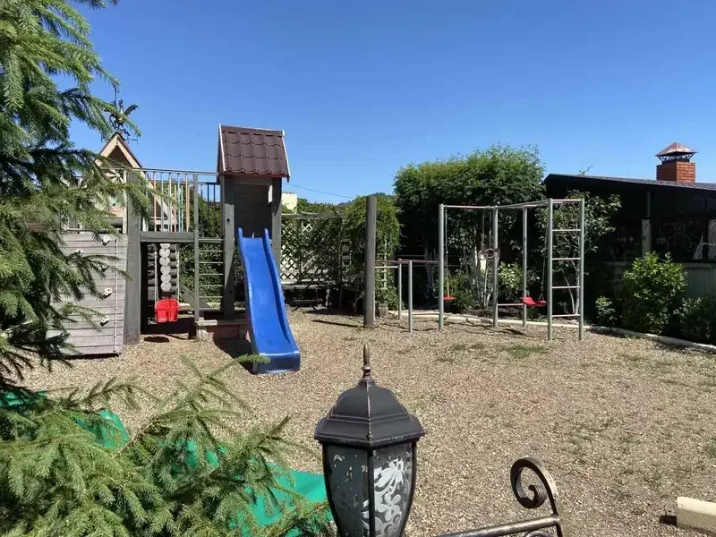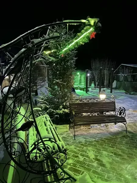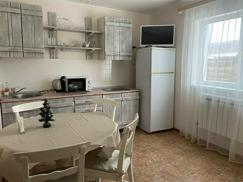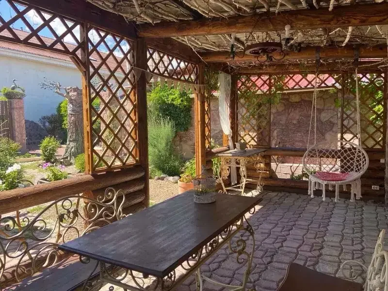 Территория дома оформлена в стиле кантри, создавая атмосферу умиротворения и комфорта. Здесь можно насладиться пением петухов, горным воздухом и уединенностью, отдохнуть в русской бане с березовым веничком и насладиться разнообразными активностями на свежем воздухе.