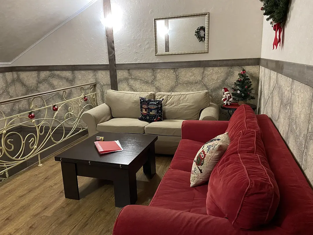 Вас ожидает уютное проживание в двухэтажных апартаментах с отдельными входами. На первом этаже находятся гостиная, оборудованная кухонной зоной с техникой и посудой, санузел с душем, на втором этаже располагаются спальни.