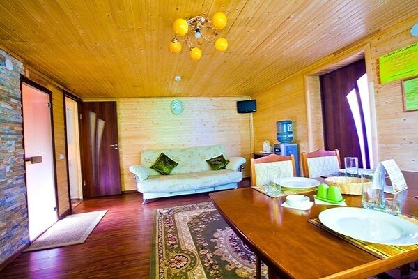 .Здесь есть комфортабельные жилье в виде деревянных домиков с разной вместительностью, двухэтажных усадеб с собственными дворами, беседками, купелями и мангалами, гостевыми домами и даже небольшого отеля на пять номеров, а также: ресторанный комплекс с банкетными залами; детский городок; автостоянка. В гостевых домах имеется спа-бассейн, сауна, бильярд, караоке.