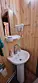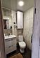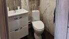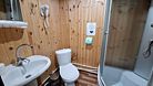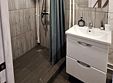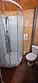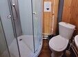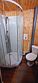 ванная комната с душевой кабиной, санузлом и горячей водой, фен